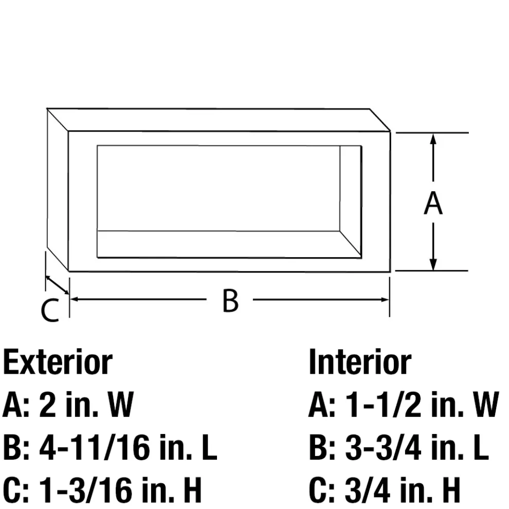 - Exterior dimensions (H x W x D): 1-3/16 in (29 mm) x (51 mm) x 4-11/16 in (11.9 cm)