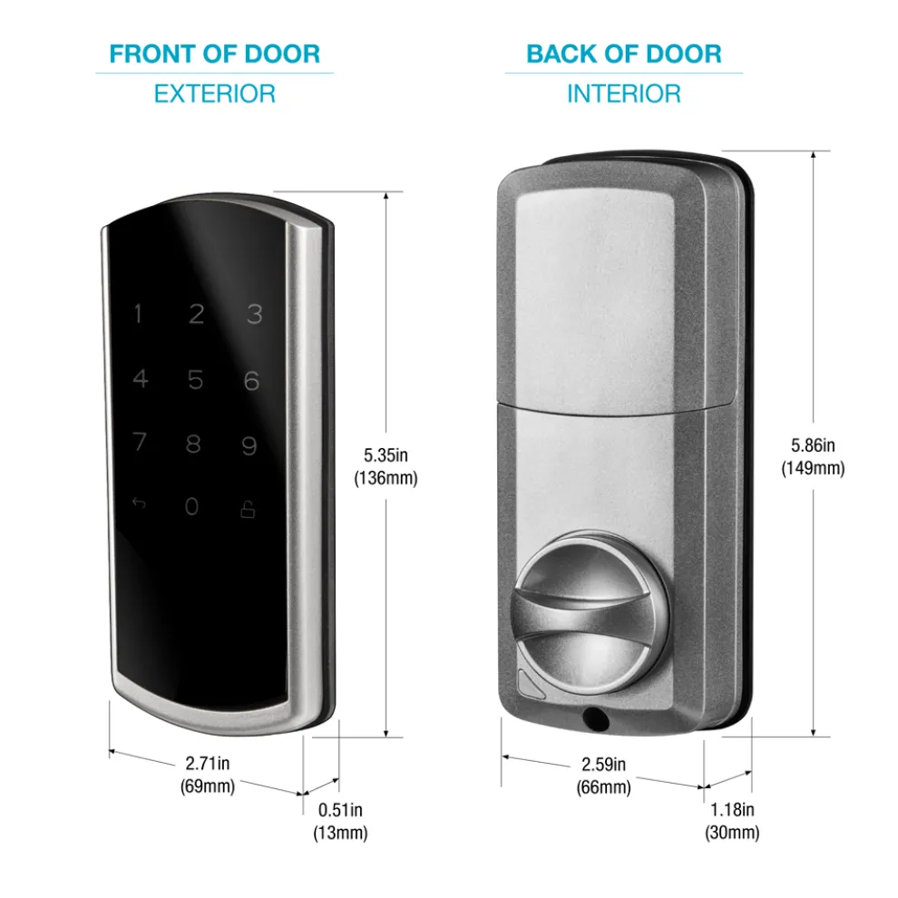 - Deadbolt Locking Flexibility – Easy locking options include a manual interior thumb-turn knob and a one-touch lock button. When the deadbolt is retracted, touching any button while awake will extend the bolt.