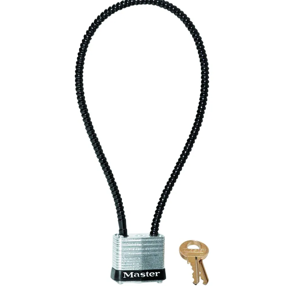The Master Lock No. 107DSPT Cable Gun Lock is 14in (35cm) long and features .22in (5.6mm) diameter braided steel for maximum strength and flexibility. The padlock features a 1-1/8in (29mm) wide laminated steel body for maximum strength and reliability. This gun lock is California approved and tested by independent laboratory to stringent AB106 requirements. The Limited Lifetime Warranty provides peace of mind from a brand you can trust.