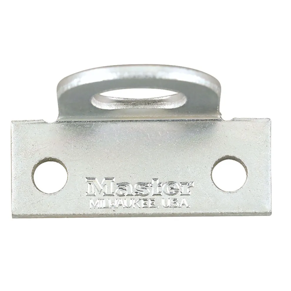 The Master Lock No. 60R Padlock Eyes are designed to mount virtually anywhere and with a large shackle hole, it accepts a shackle diameter up to 1/2in (13mm). The right angle orientation makes this padlock eye ideal for gates and shed doors. These padlock eyes also give you the ability to add safety lockout capabilities to older equipment.