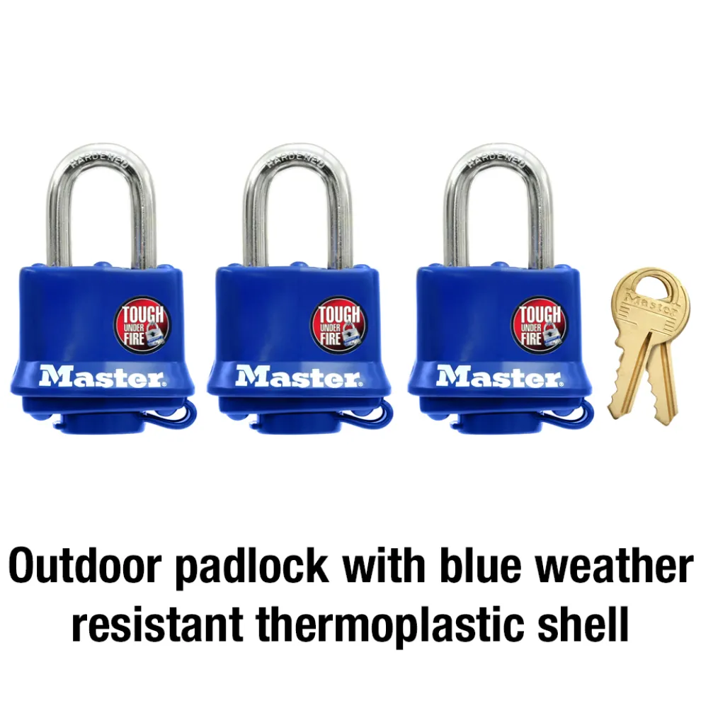 - Blue weather resistant thermoplastic shell provides outdoor protection against moisture, dirt and grime