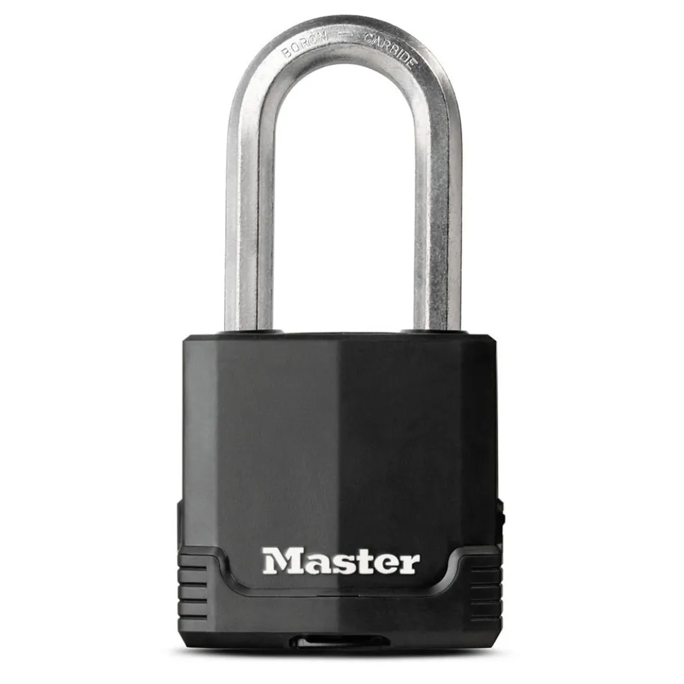 The Master Lock Magnum® No. M515XDLH Laminated Padlock features a 2-1/8in (54mm) wide laminated steel body for maximum strength and reliability, and is surrounded by stainless steel and zinc outer components for weather resistance. The Rust-Oleum® Certified protection provides a lifetime guarantee against rusting on the lock body; and covered lock body, keyway, and shackle seals offer additional weather protection. The 3/8in (10mm) diameter octagonal shackle is 2in (51mm) long and made of Tough-Cut™ boron-carbide, 50% harder than hardened steel, offering maximum resistance to cutting and sawing. The 4-pin cylinder prevents picking and the dual locking ball bearings provide maximum resistance against prying and hammering. The Lifetime Guarantee provides peace of mind from a brand you can trust. Rust-Oleum® Certified Protection is a registered trademark of Rust-Oleum® Corporation.