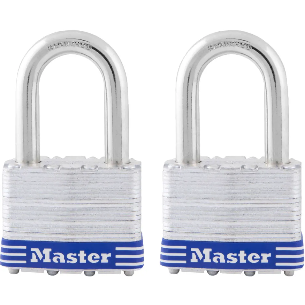 The Master Lock No. 5TLF Laminated Padlock features a 2in (51mm) wide laminated steel body for maximum strength and reliability. The 3/8in (10mm) diameter shackle is 1-1/2in (38mm) long and made of hardened boron alloy, offering maximum resistance to cutting and sawing. The 4-pin cylinder prevents picking and the dual locking ball bearings provide resistance against prying and hammering. The Limited Lifetime Warranty provides peace of mind from a brand you can trust.