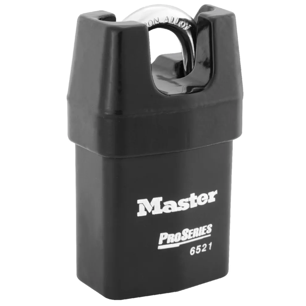 - Iron shroud protects shackle from bolt cutters