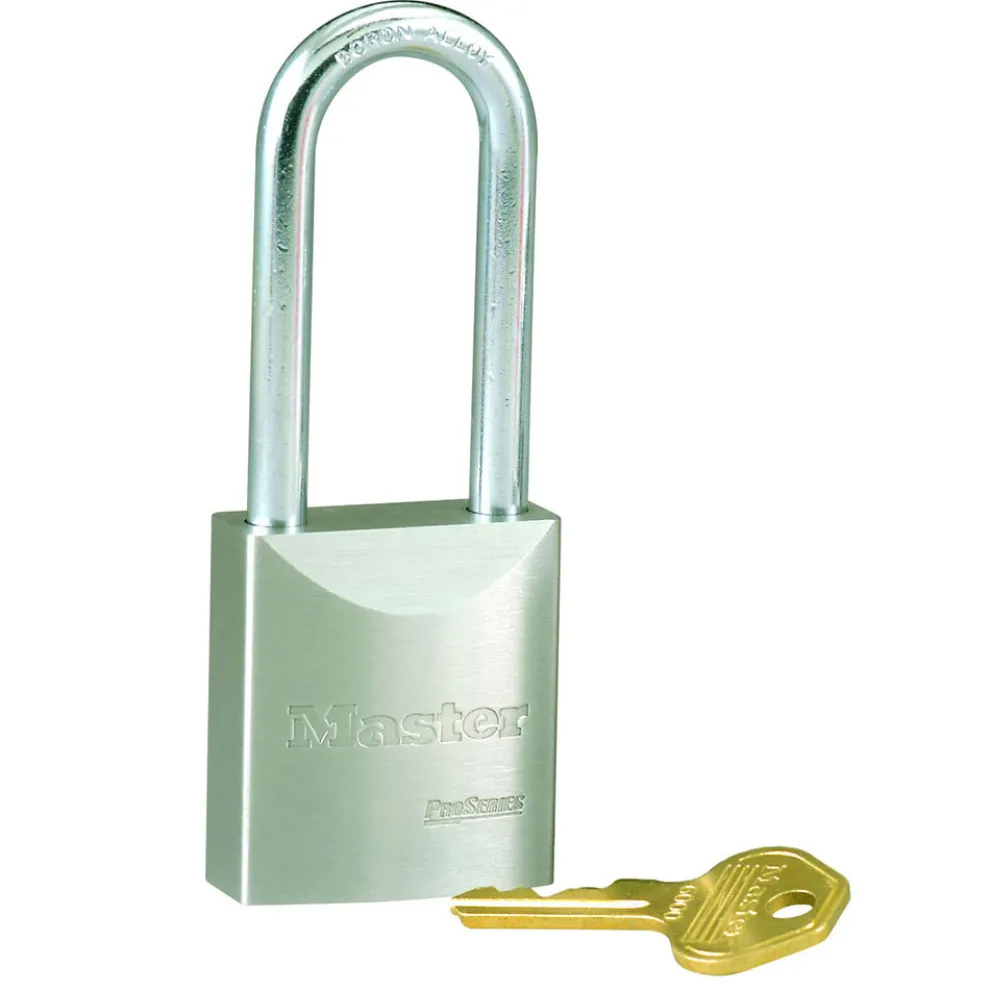 The Master Lock No. 7030KALT ProSeries® Solid Body Padlock, keyed alike – multiple locks open with the same key – features a 1-9/16in (40mm) heavy hardened steel body with chrome rustproofing and a 3in (76mm) tall, 1/4in (6mm) diameter hardened boron alloy shackle for superior cut resistance. Designed for commercial/industrial applications a dual ball locking mechanism resists pulling and prying and a high security, rekeyable 5-pin cylinder with spool pins is virtually impossible to pick.
