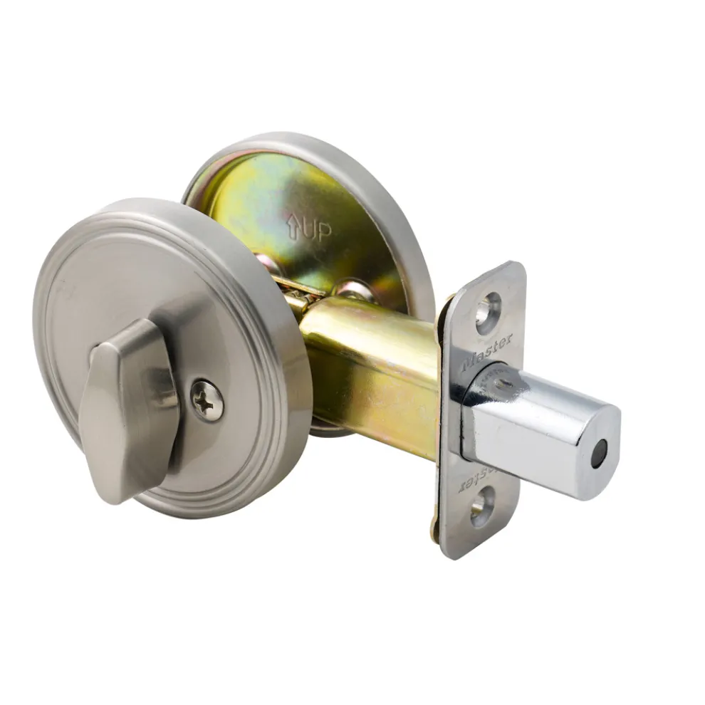 - Single sided deadbolt (thumb turn inside, no exterior keyway