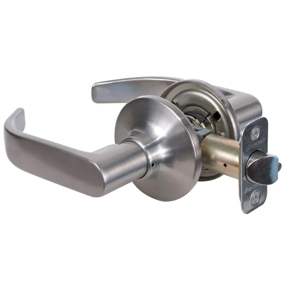 The Master Lock No. RL0415BOX features a return-style lever with six-way adjustable latch to fit all doors with 2-3/8in or 2-3/4in backset, square, rounded corners, or drive-in. This lever offers ANSI Grade 3 performance for interior non-locking applications. The satin nickel finish provides a sleek appearance. The 25 Mechanical 5 Finish Warranty provides peace of mind from a brand you can trust.