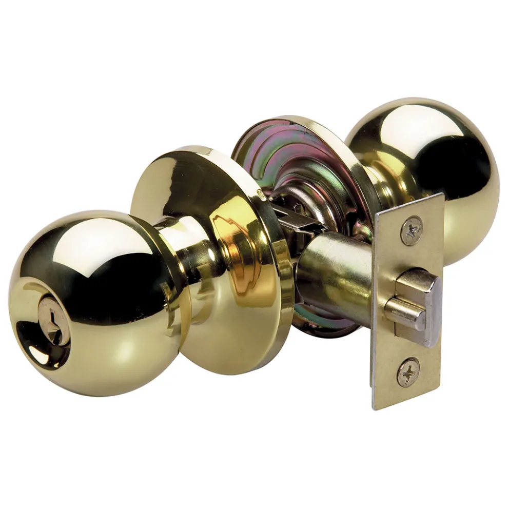 The Master Lock No. BAO0103 features a ball style knob with six-way adjustable latch to fit all doors with 2-3/8in or 2-3/4in backset, square, rounded corners, or drive-in. This knob offers ANSI Grade 3 performance for exterior locking applications. The polished brass finish provides a sleek appearance. The Limited Lifetime Warranty provides peace of mind from a brand you can trust.