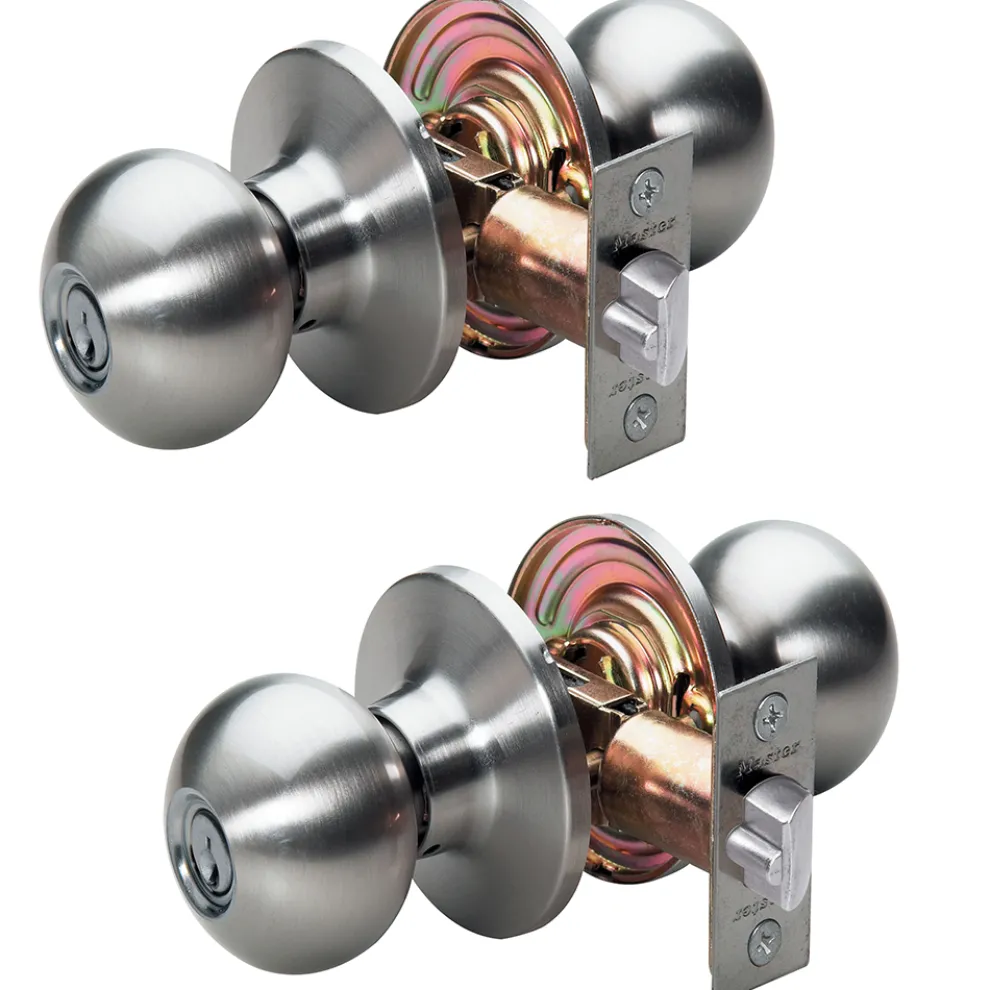 The Master Lock No. BAO0115T feature ball style knobs with six-way adjustable latch to fit all doors with 2-3/8in or 2-3/4in backset, square, rounded corners, or drive-in. This knob offers ANSI Grade 3 performance for exterior locking applications. The satin nickel finish provides a sleek appearance. The Limited Lifetime Warranty provides peace of mind from a brand you can trust.