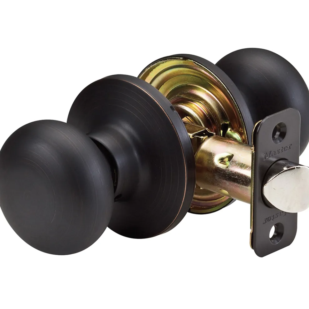 The Master Lock No. BCO0412P features a biscuit style knob with six-way adjustable latch to fit all doors with 2-3/8in or 2-3/4in backset, square, rounded corners, or drive-in. This knob offers ANSI Grade 3 performance for interior non-locking applications. The aged bronze finish provides a sleek appearance. The Limited Lifetime Warranty provides peace of mind from a brand you can trust.