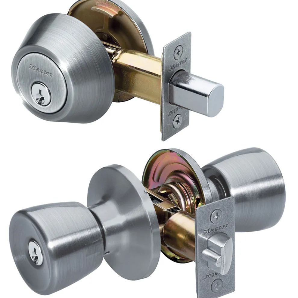 The Master Lock No. TUCO0615 features a keyed alike tulip style knob and single cylinder deadbolt, with interior thumb turn. The six-way adjustable latch fits all doors with 2-3/8in or 2-3/4in backset, square, rounded corners, or drive-in. The deadbolt is four way adjustable for 2-3/8in or 2-3/4in backset, square, or rounded corners. This knob and deadbolt combo pack is ANSI Grade 3 and designed for exterior door applications. The satin nickel finish provides a sleek appearance. The Ten Year Limited Warranty provides peace of mind from a brand you can trust.