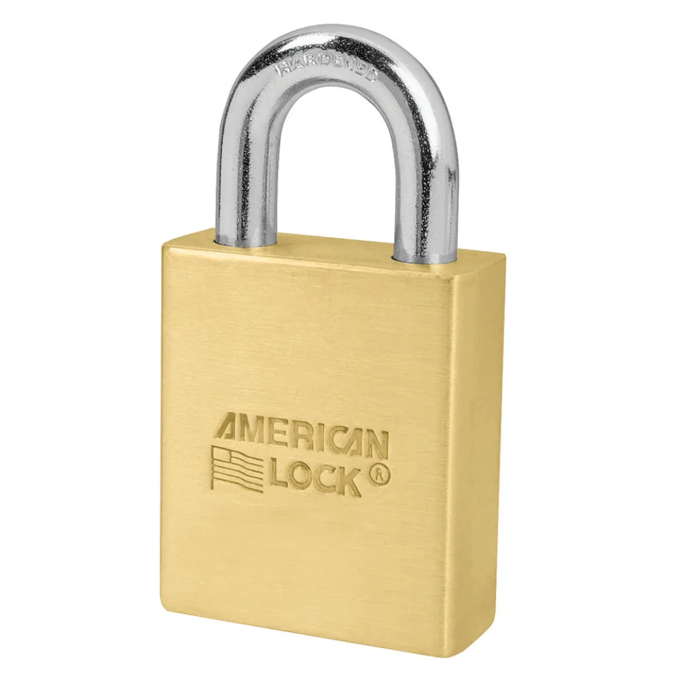 The American Lock No. A3900S Solid Brass Large Format Interchangeable Core Padlock features a 2in (51mm) wide brass body and a 1-1/8in (29mm) tall, 3/8in (10mm) diameter hardened boron shackle for superior cut resistance. A dual ball bearing locking mechanism resists pulling and prying and the interchangeable core accepts Schlage®, Everest® and Primus® Cores to match your door security system.