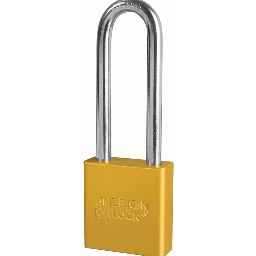 The American Lock No. A1267NKAYLW Solid Aluminum padlock with BumpStop® Advanced Cylinder Technology, Keyed Alike – multiple locks open with the same key – features a 1-3/4in (44mm) wide aluminum, red body and a 3in (75mm) tall, 5/16in (8mm) diameter hardened boron alloy steel shackle for superior cut resistance. Dual ball bearing locking mechanism resists pulling and prying and 6-pin APTC14 rekeyable cylinder is pick resistant and has tens of thousands of key changes.