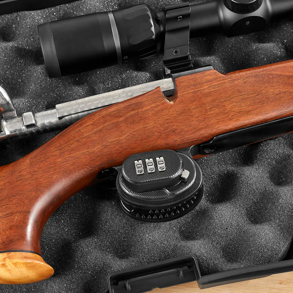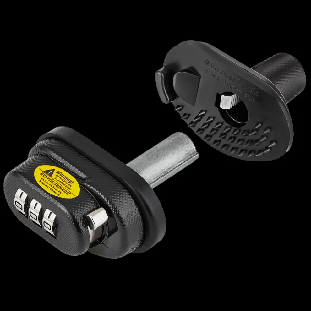 The Master Lock No. 94DSPT Set Your Own Combination Trigger Lock features a steel and zinc body for maximum durability. The protective rubber pads protect gun’s finish from marring or scratching. The 3 dial combination security offers keyless convenience. The Limited Lifetime Warranty provides peace of mind from a brand you can trust.