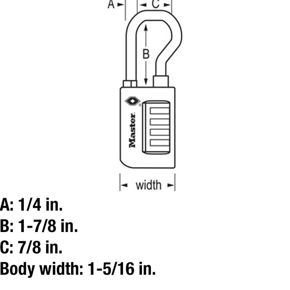 The Master Lock No. 4696T Set Your Own Combination TSA-Approved Luggage Lock features a 1-5/16in (35mm) wide metal body for durability. The 1/4in (6mm) diameter shackle is 1-7/8in (48mm) long, offers extended reach for use on equipment cases and is made of steel, offering resistance to cutting and sawing. Transportation Security Administration (TSA) screeners can open, inspect and relock bags and cases locked with a TSA-Approved lock. Lock your checked baggage with the lock TSA screeners won’t cut! The Limited Lifetime Warranty provides peace of mind from a brand you can trust.