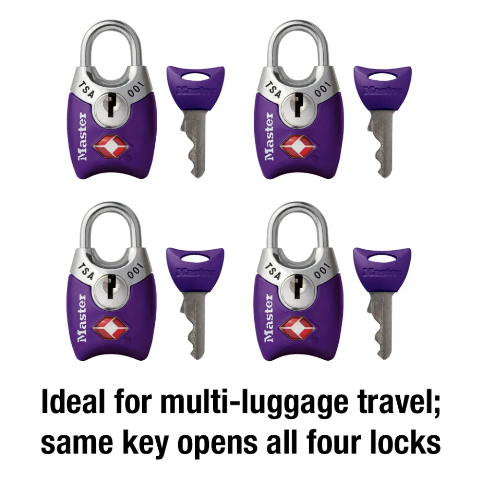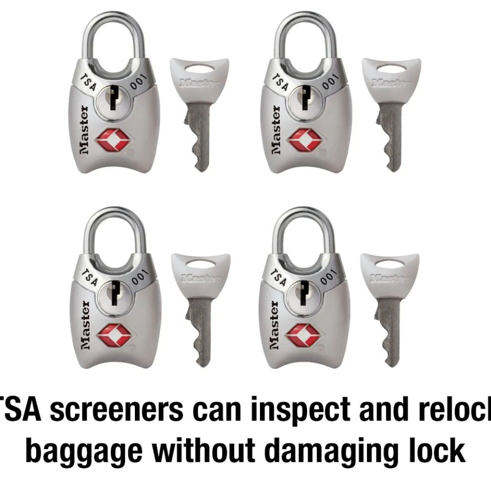 The Master Lock No. 4689Q TSA-Approved Luggage Locks feature a 1in (25mm) wide metal body for durability. The shrouded design minimizes shackle exposure and protects against bolt cutter attacks. The 1/8in (3mm) diameter shackle is 9/16in (14mm) long and made of steel, offering resistance to cutting and sawing. Transportation Security Administration (TSA) screeners can open, inspect and relock bags locked with a TSA-Approved lock. Lock your checked baggage with the lock TSA screeners won’t cut! The Limited Lifetime Warranty provides peace of mind from a brand you can trust.