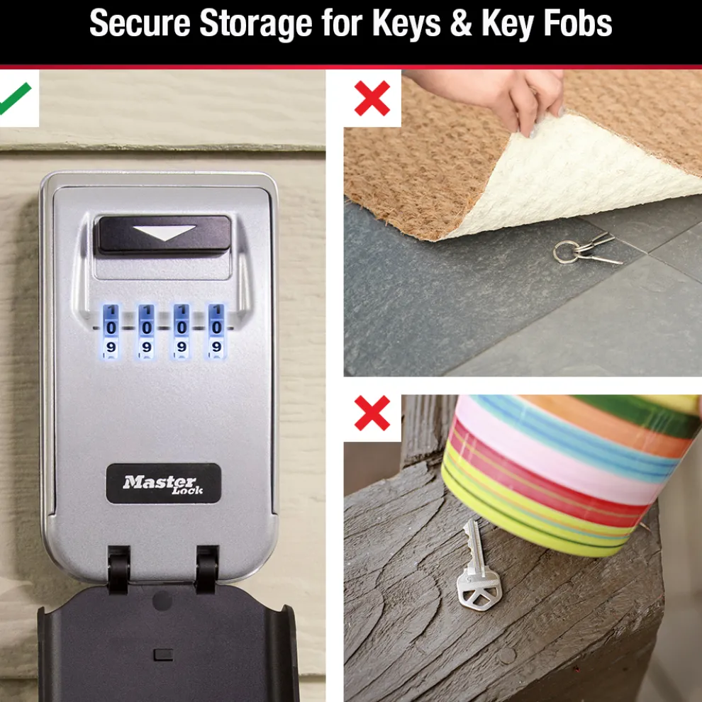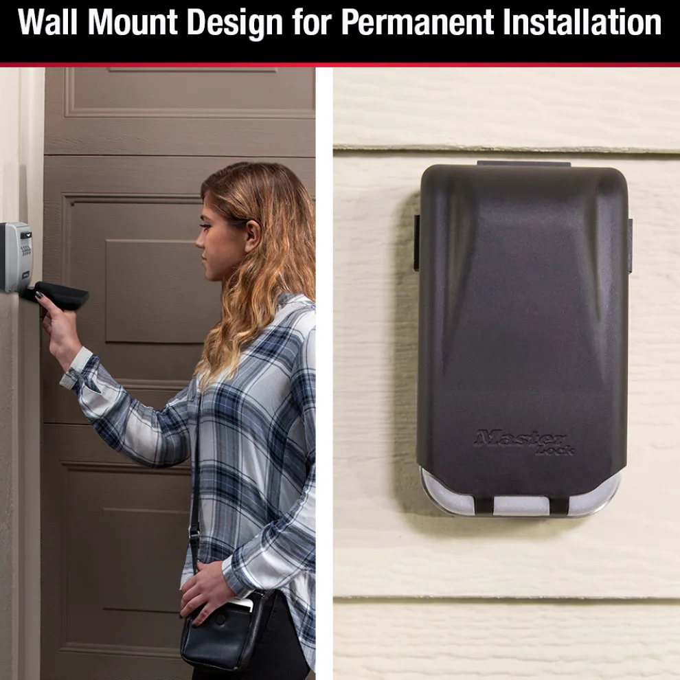 - Wall mount lock box provides secure storage of keys or access cards